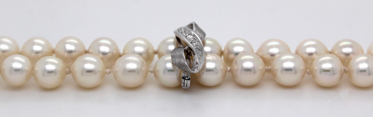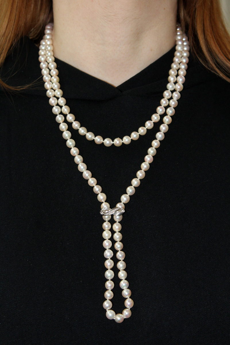 Akoyaperlen Kette Weißgold 585 Diamanten 124cm. Perlen 7mm endlos