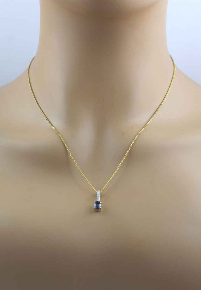 Alexandrit Anhänger Gelbgold 585 14K Lab Grown Alexandrit Lab Grown Diamanten