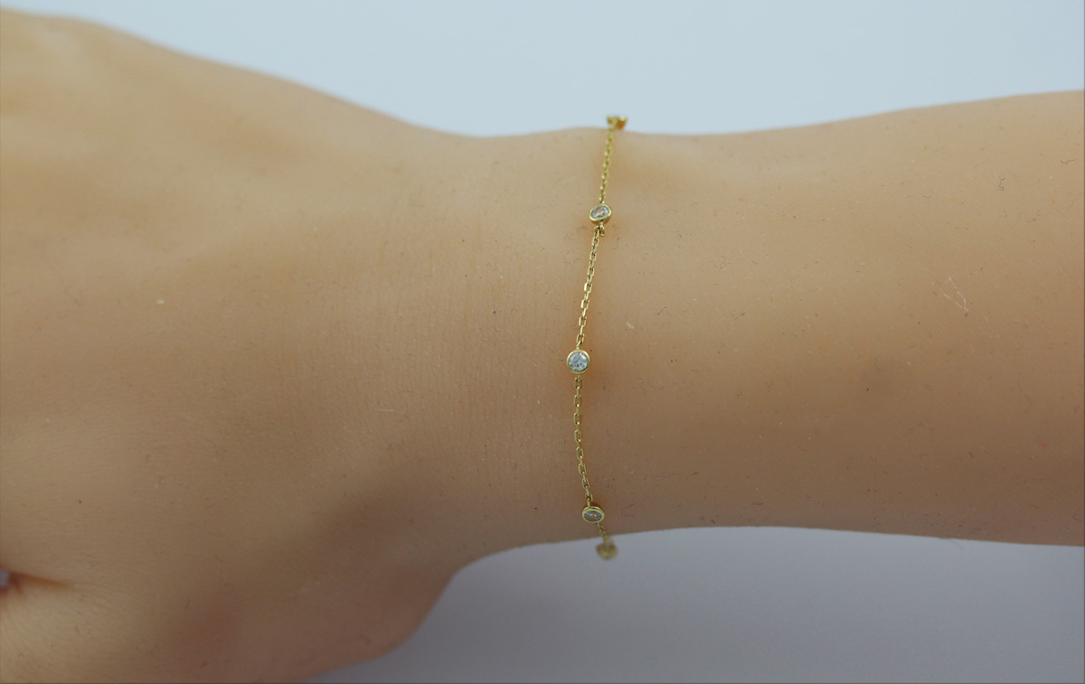 Ankerarmband 0,7mm Gelbgold 333 8 Karat weiße Zirkonia 17