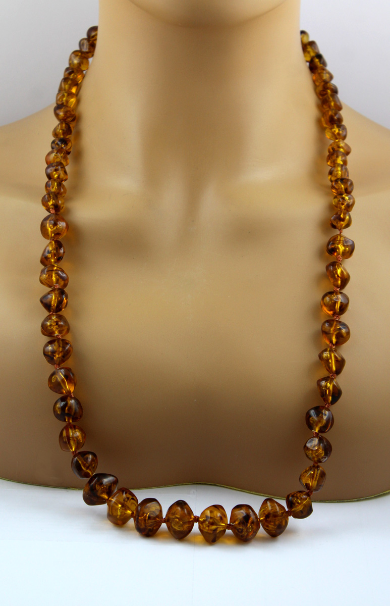 Bernsteinkette 58cm vergoldet Baltische Bernsteine cognac braun Vintage 1930. Bernstein ist versteinertes, fossiles Baumharz und gehört zu den ältesten und begehrtesten Edelsteinen und Schmucksteinen der Welt. Länge 58cm, Gewicht 40,47 Gramm, Bernsteine 17-10mm. Damenkette Edelsteinkette. Ein zeitloses Accessoire, das in keiner Schmucksammlung fehlen sollte