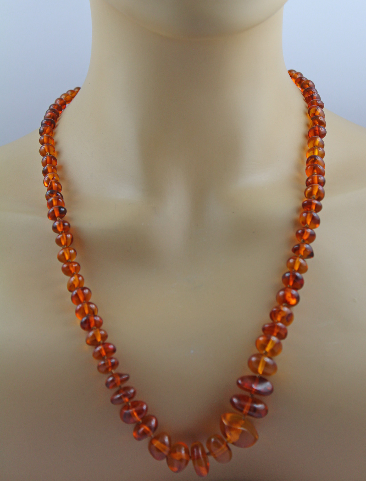 Bernsteinkette cognac-braune Edelsteine Antikschmuck 68