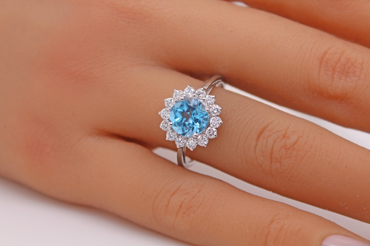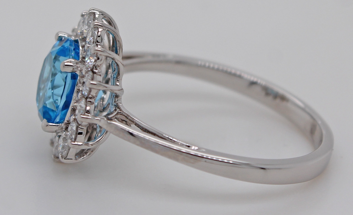 Blautopas Ring Weißgold 585 14K blauer Edelstein Lab Grown Diamanten 19
