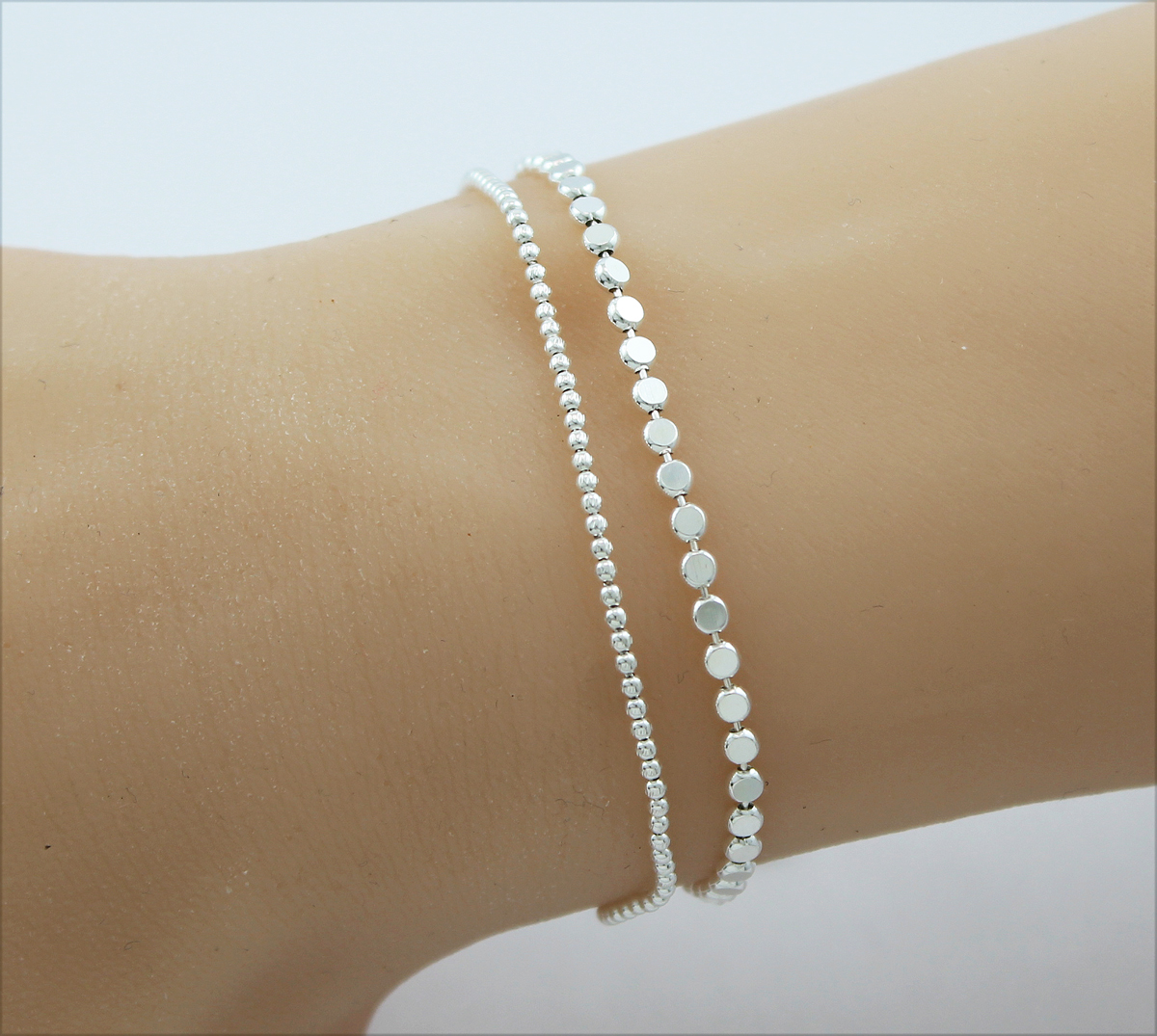 Armband Sterling Silber 925 Kugeldesign doppelreihig. Feines Armband, welches doppelreihig gearbeitet wurde. Breite 4,0mm, Länge bis zu 23cm individuell verstellbar, Gewicht 5,0 Gramm. Damenarmband Damenschmuck. Geschenkidee zeitloser Klassiker