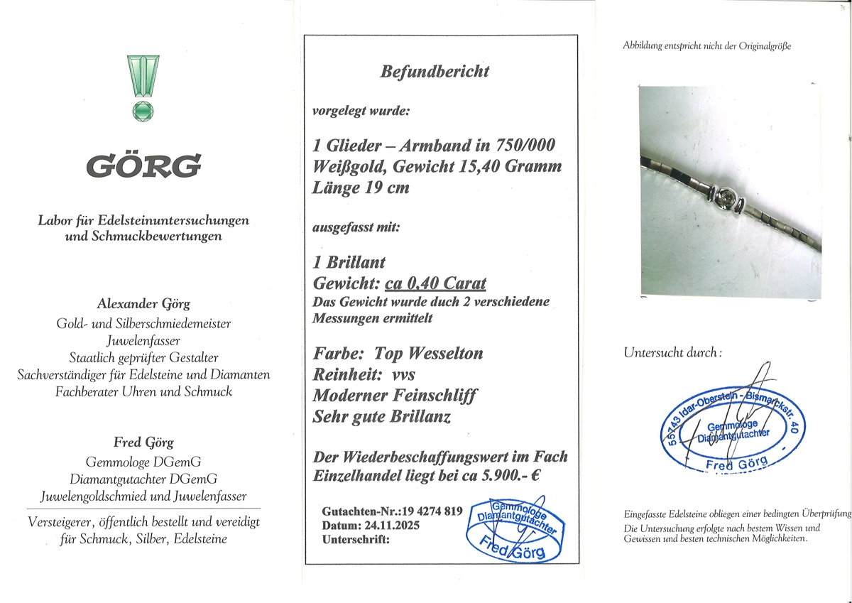 Brillant Armband Weißgold 750 18 Karat Diamant 0.40ct 19