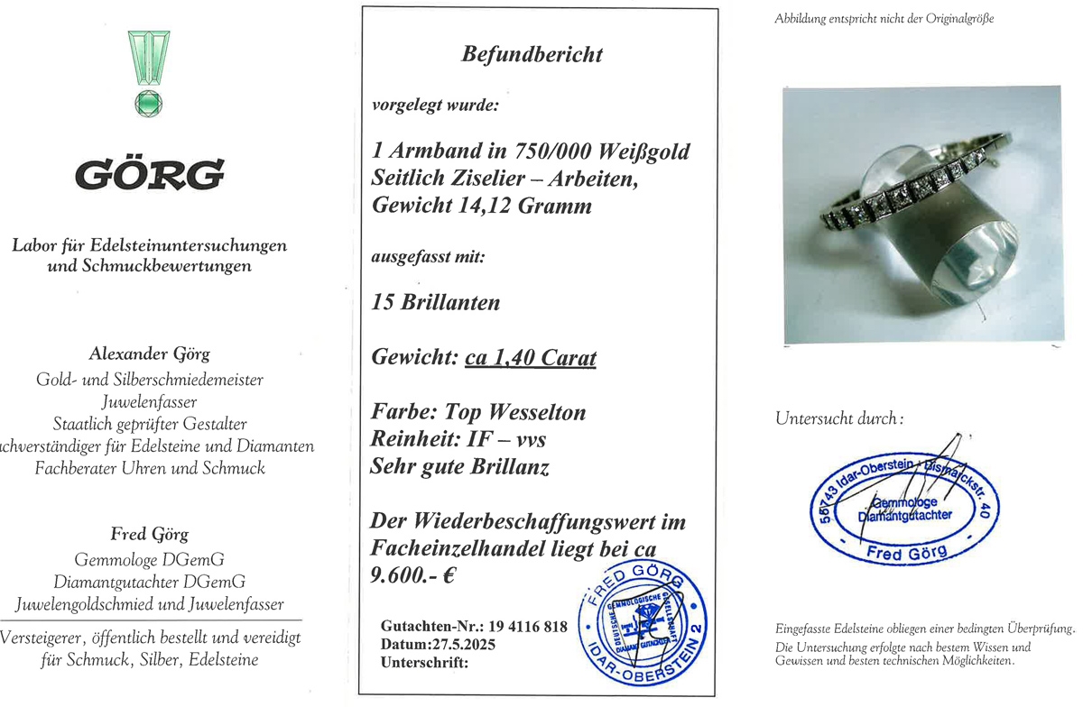 Brillant Armband Weißgold 750 18K Brillanten 1.4ct Lupenrein Antik 18