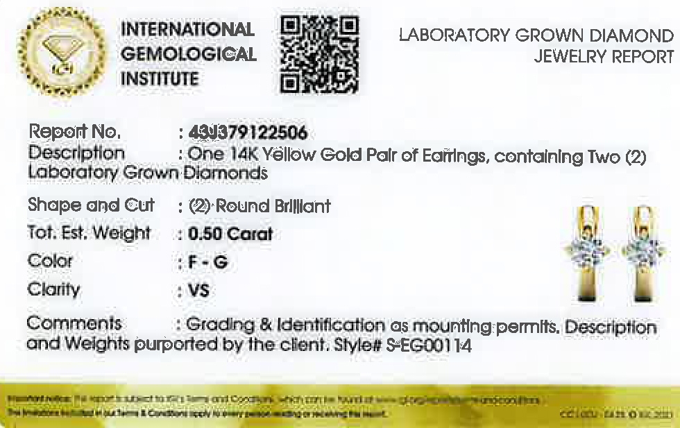 Brillant Creolen 0.5ct Gold 585 14K Lab Grown Diamanten IGI Zertifikat