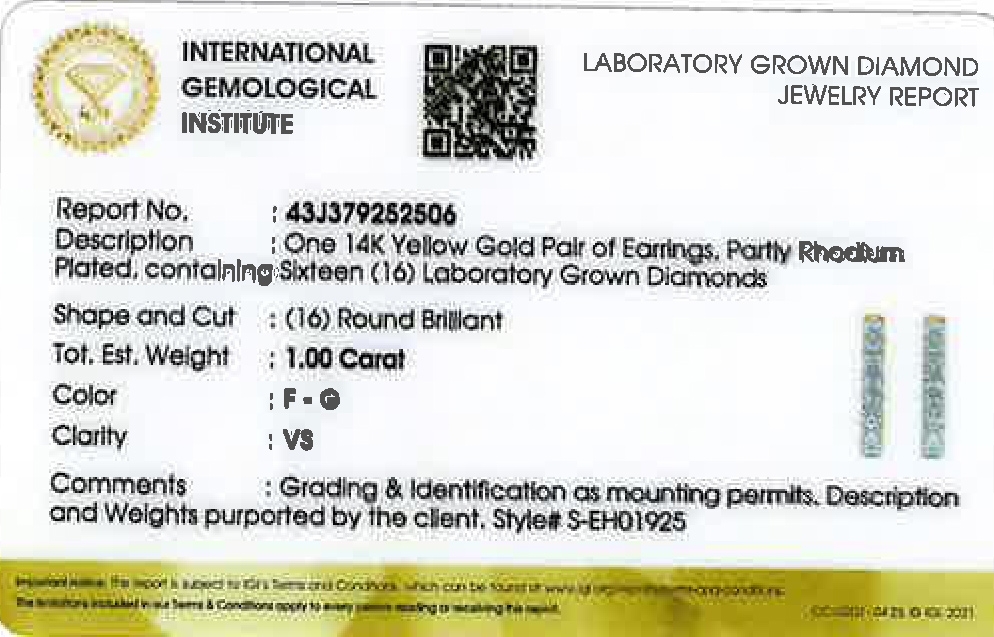 Brillant Creolen 1ct Gold 585 14K Lab Grown Diamanten IGI Zertifikat