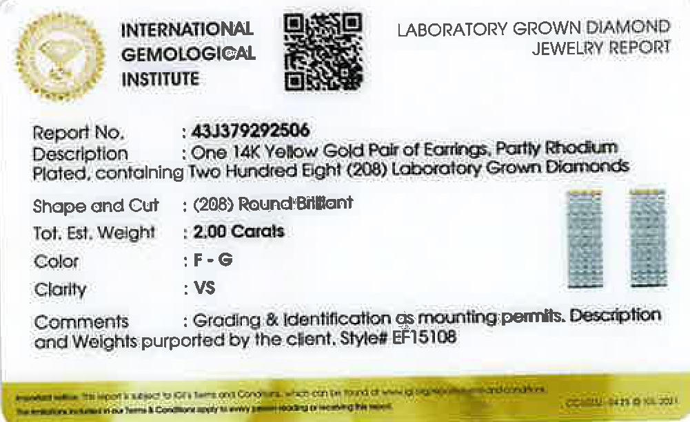 Brillant Creolen 2ct. Gold 585 14K Lab Grown Diamanten IGI Zertifikat