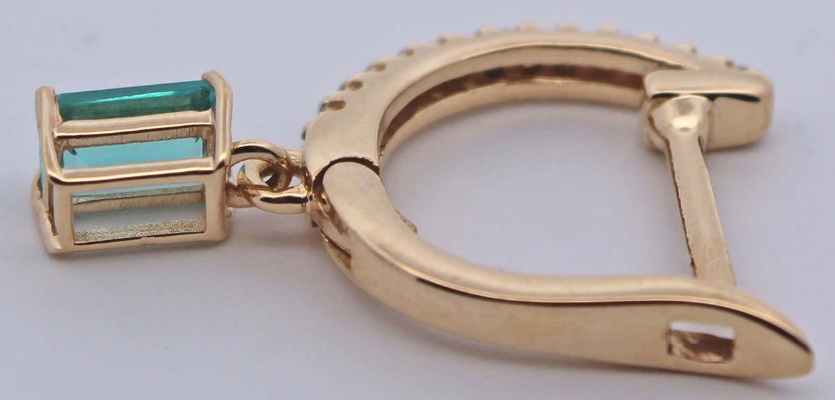 Brillant Creolen Gold 585 14K nat Apatit Edelsteine 1,0ct Lab Grown Diamanten 0,28ct. Die Creolen sind mit zwei unbehandelten, natürlichen Apatit-Edelsteinen besetzt. Breite 2,5-4,6mm, Länge 25mm, Durchmesser 16mm, Total 5,52 Gramm. Damenohrringe Damenschmuck Edelsteinschmuck. Der Labor Diamant verbindet höchste Brillanz mit ethischer Verantwortung, da er unter kontrollierten Bedingungen hergestellt wurde
