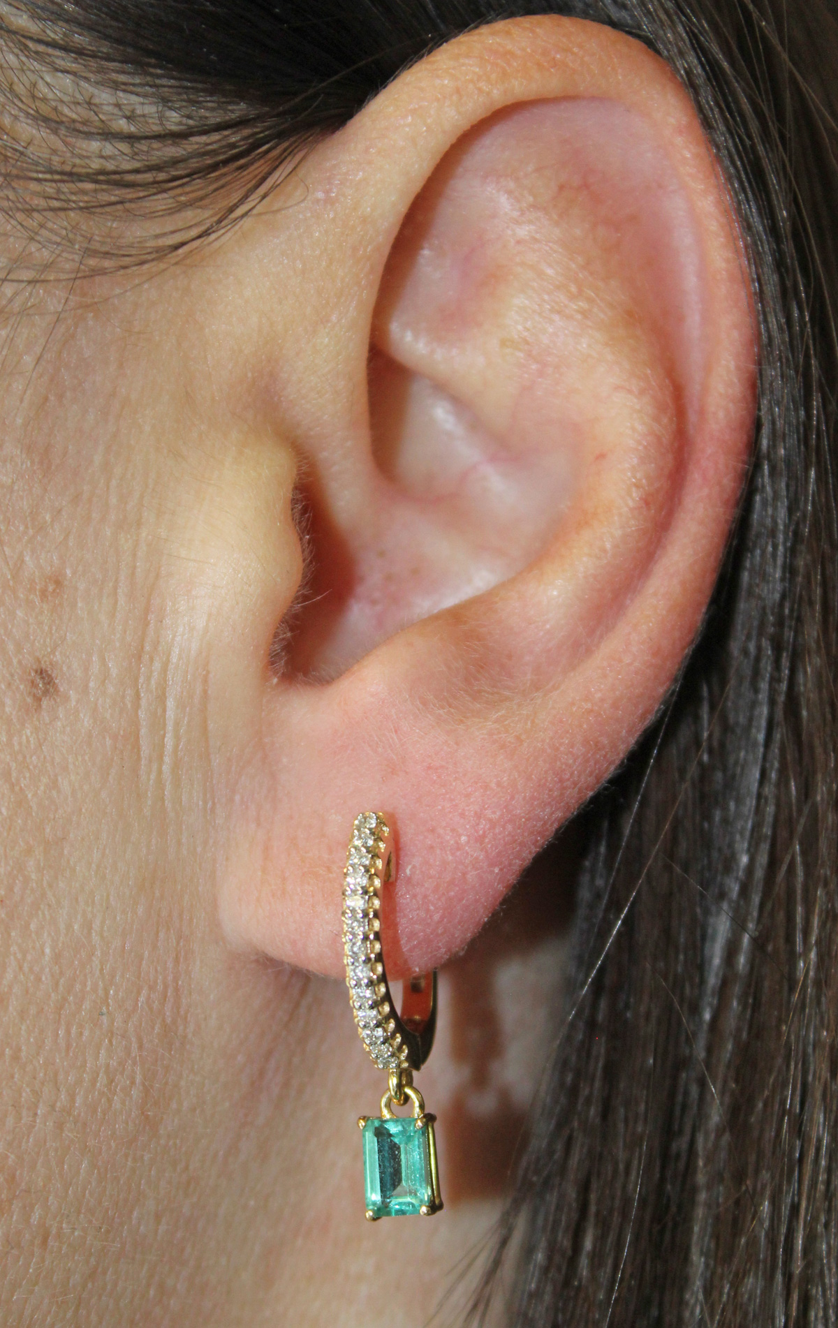 Brillant Creolen Gold 585 14K nat Apatit Edelsteine Lab Grown Diamanten