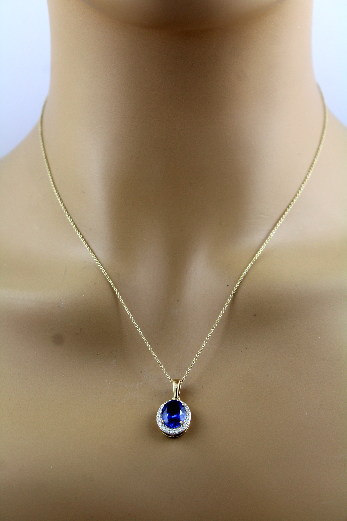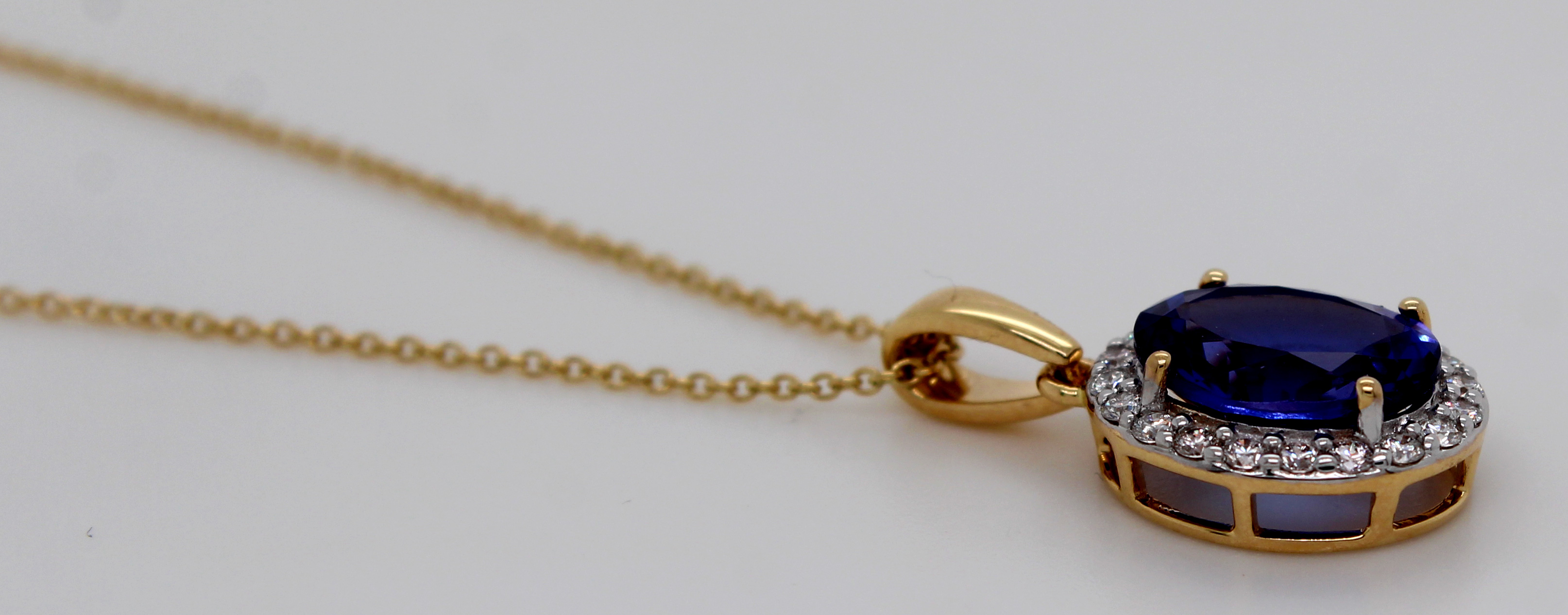 Brillant Halskette Anhänger Gold 585 14K Natur Tansanit Diamanten 45