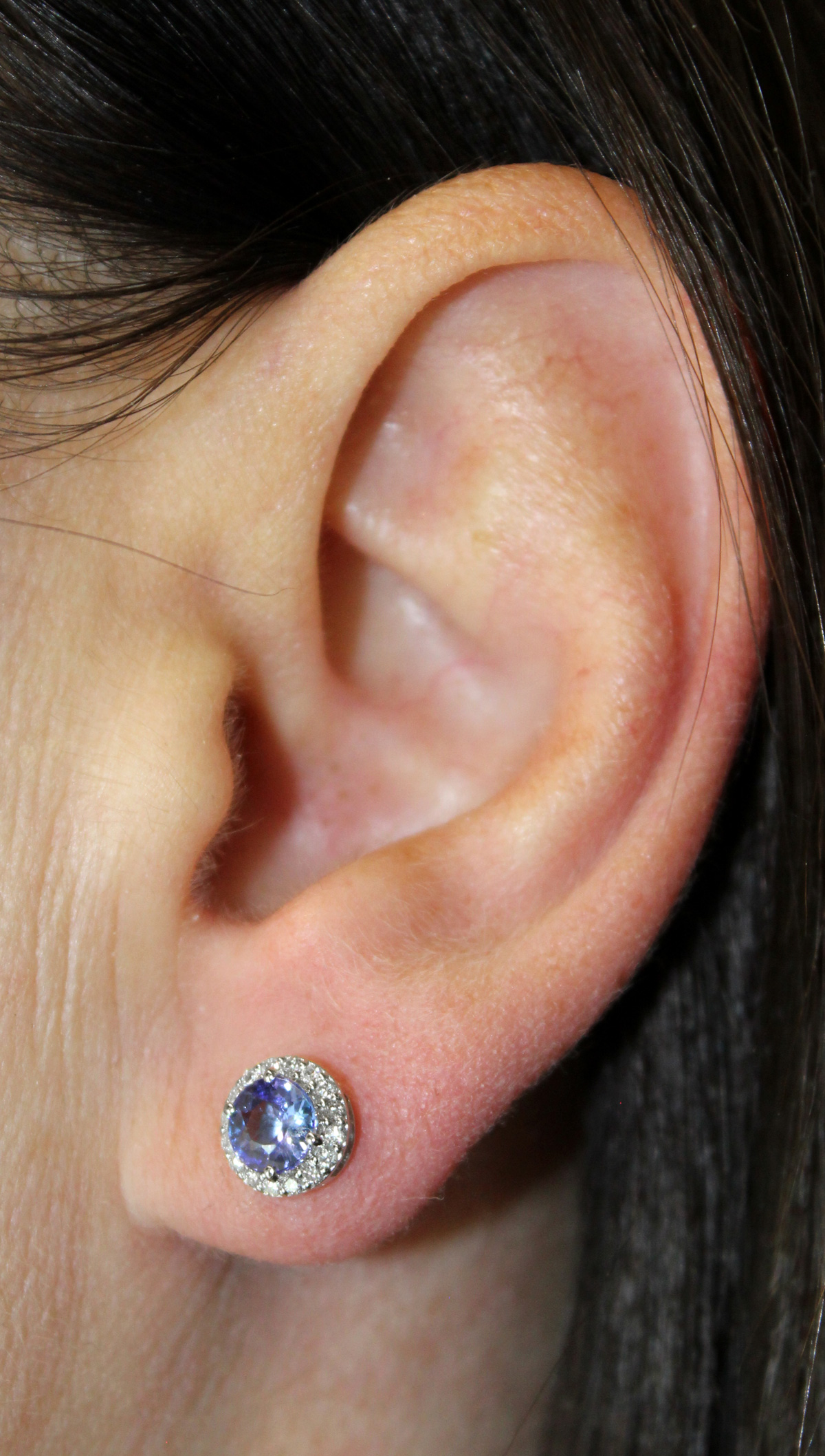 Brillant Ohrringe Platin 950 nat Tansanite 1.06ct Labor Diamanten 0.2ct