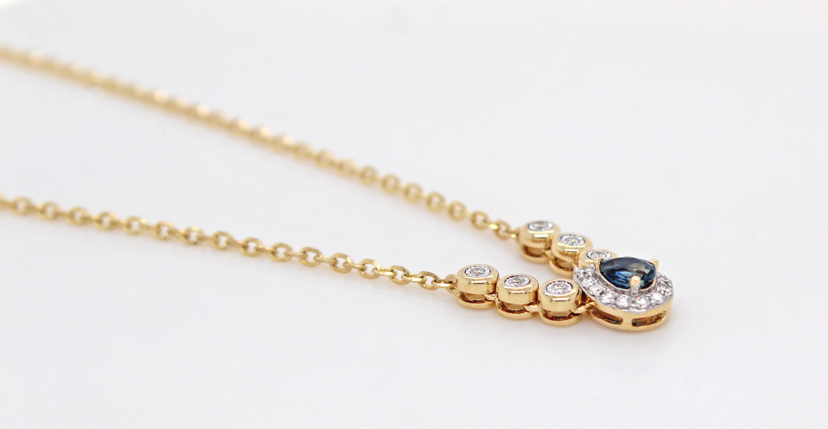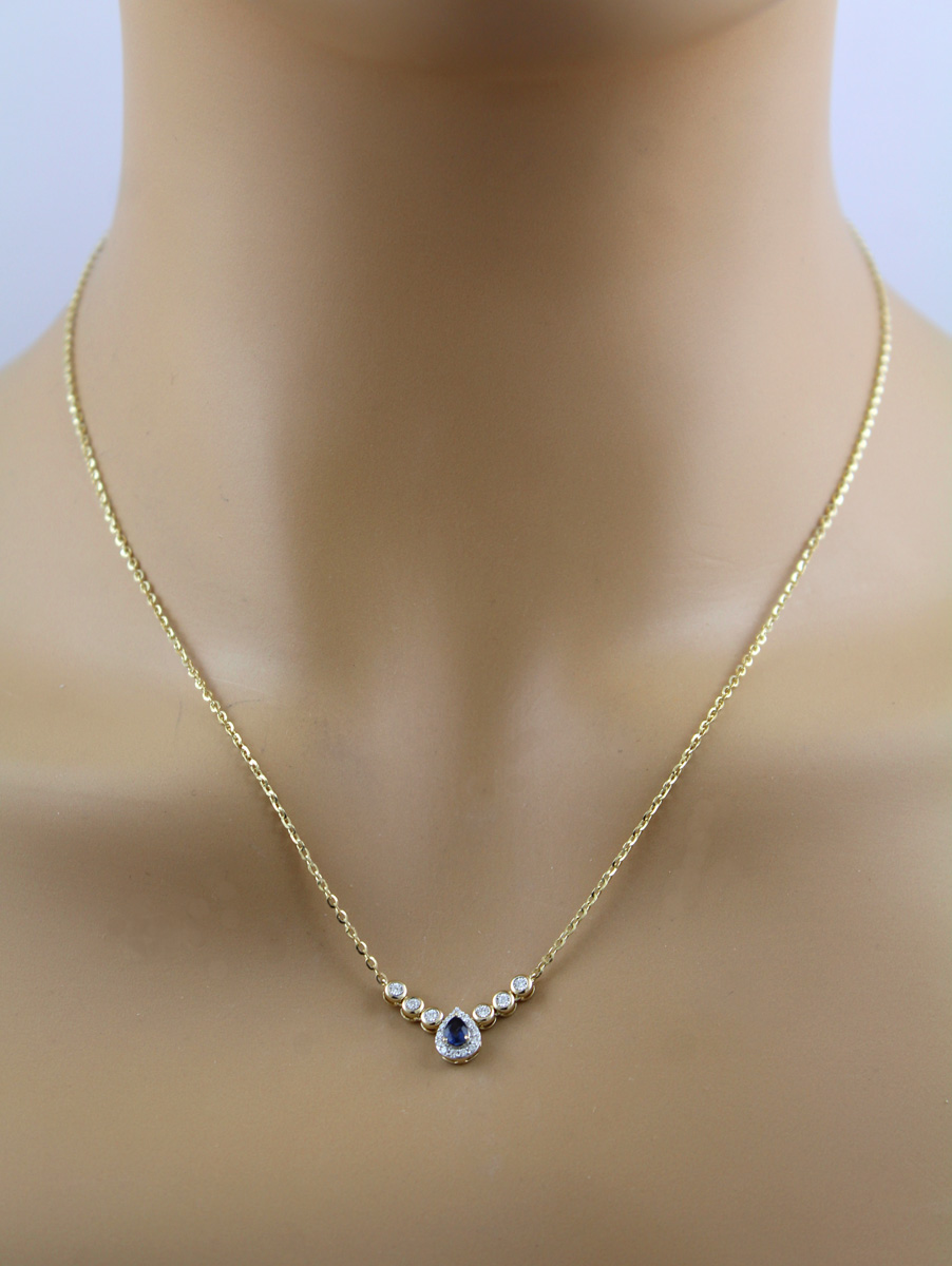 Brillant Saphir Kette Gelbgold 585 14K natürliche Edelsteine 47