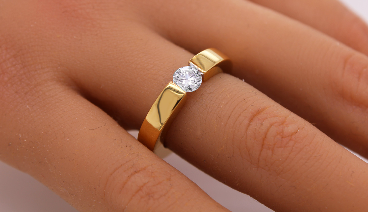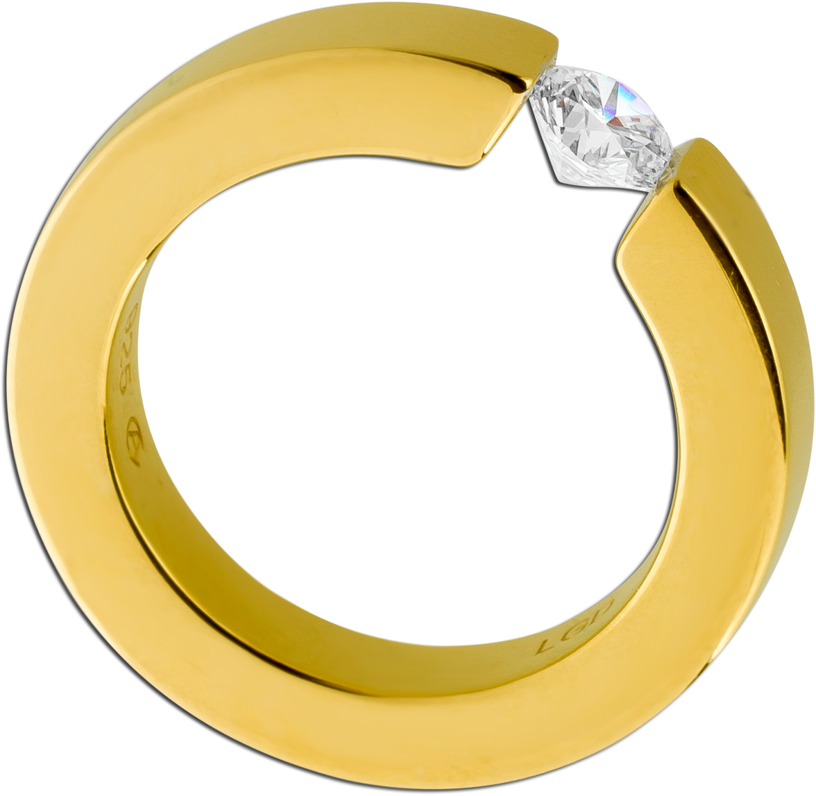 Spannring Silber 925 Gelbgold vergoldet Lab Grown Diamant 0.50ct F VSI. Ein absoluter Hingucker, die Blicke werden ihnen sicher sein. Breite 4,3mm, Stärke 3,3mm, Gewicht 8,82 Gramm, Größen 17-20mm. Verlobungsring Heiratsantrag Diamantring zeitloser Klassiker. Geschenkidee zeitloser Klassiker