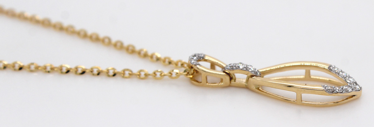 Brillantkette Gold 585 14K Natur Diamanten 0.13ct. Eine exklusive Kombination aus feinstem Gelbgold und erlesenen Edelsteinen. Länge 40+3+5cm, Gewicht 3,11 Gramm, Anhänger: Breite 8,2mm, Länge 24mm, Höhe 8,2mm, Kettenbreite 1,3mm. Damenschmuck Damenkette Damenanhänger Brillantschmuck. Ein zeitloses Accessoire, das in keiner Schmucksammlung fehlen sollte