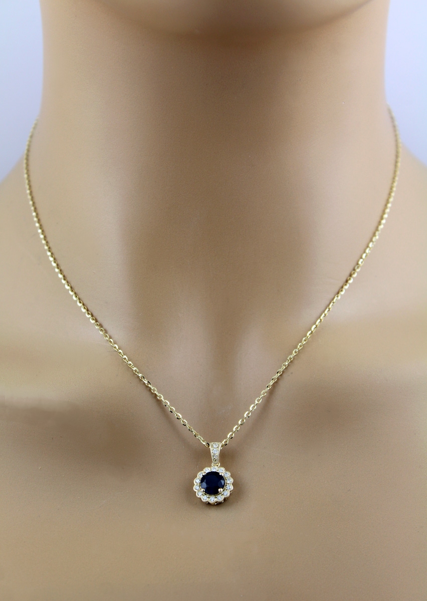 Brillantkette Gold 585 14K Saphir Diamanten Natur Edelsteine. Spezieller und zugleich traumhafter Schmuck für den Alltag oder auch zum Ausgehen. Länge 40+3+5cm, Anhänger: Breite 10,6mm, Länge 16mm, Höhe 4,8mm, Kettenbreite 1,3mm. Damenschmuck Damenkette Damenanhänger Brillantschmuck. Ein zeitloses Accessoire, das in keiner Schmucksammlung fehlen sollte