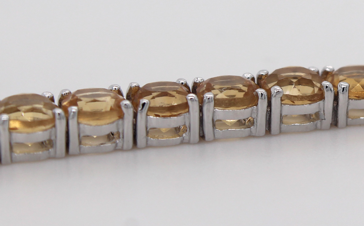 Tennisarmband Silber 925 Citrin Edelsteine rhodiniert poliert. Spezieller und zugleich traumhafter Schmuck für den Alltag oder auch zum Ausgehen. Breite 4,0mm Stärke 3,2mm Längen 18 und 21cm Gewicht 9,9 Gramm. Geschenkidee zeitloser besonderer Klassiker