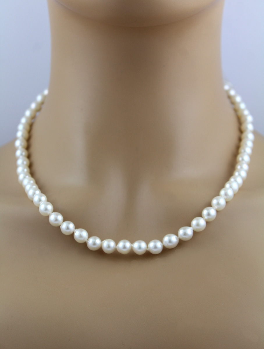 Perlenkette 41cm Japanische Akoyaperlen 8mm Silber 925 40