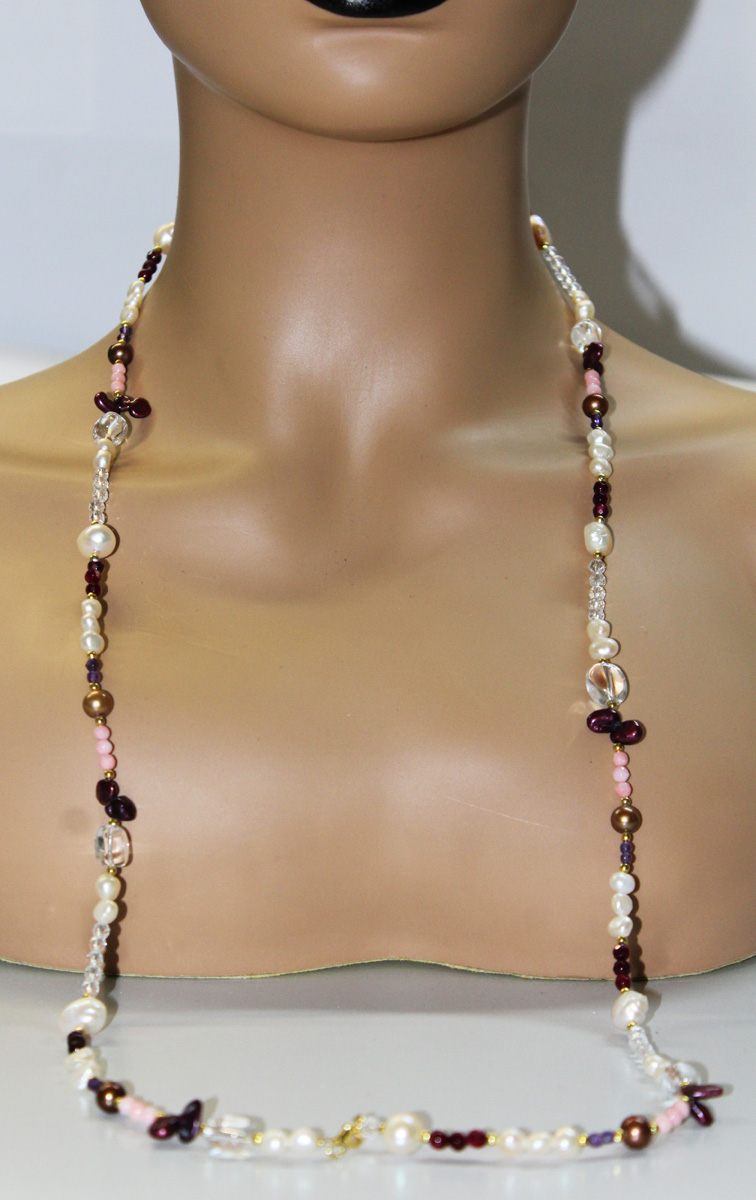 Perlenkette Edelsteinkette Achat Bergkristall Amethyst Rosenquarz 90cm 90