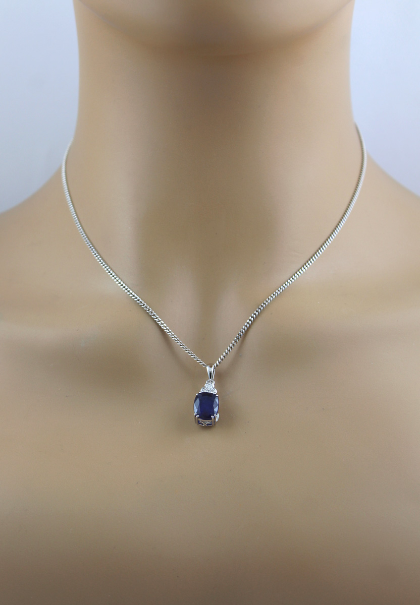 Saphir Anhänger Weißgold 585 14K blauer Edelstein Lab Grown Diamanten
