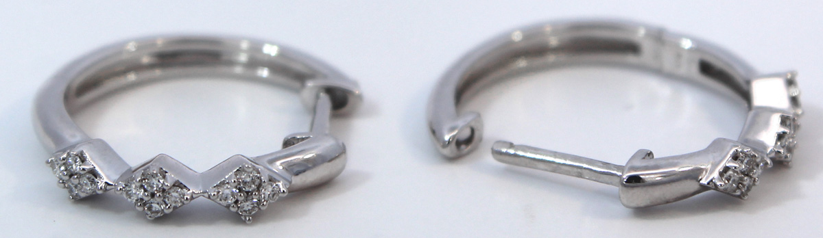 Diamant Creolen Weißgold 375 9K Lab Grown Diamanten 0.07ct. Klassische Creolen welche zu allen Anlässen passend sind. Breite 1,6-2,5mm, Stärke 1,5-2,5mm, Länge 13,2mm, Durchmesser 13,8mm, Total 1,43 Gramm. Damenohrringe Goldschmuck Labor Diamanten. Tauchen Sie ein in die Welt der meisterhafter Goldschmiedekunst