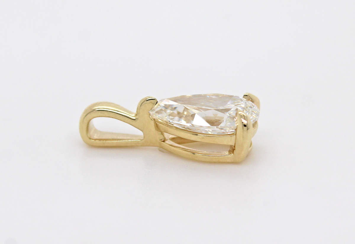 Anhänger Gold 585 14K Lab Grown Diamant 1.5ct IGI Zertifkat. Der Labor Diamant verbindet höchste Brillanz mit ethischer Verantwortung, da er unter kontrollierten Bedingungen hergestellt wurde. Länge 16,3mm, Breite 6,5mm, Höhe 5mm, Öse 3,7x1,5mm, 1,25 Gramm. Damenanhänger Damenschmuck Diamantschmuck. Ein imposanter und zeitloser Klassiker, welcher jedes Frauenherz höher schlagen lässt