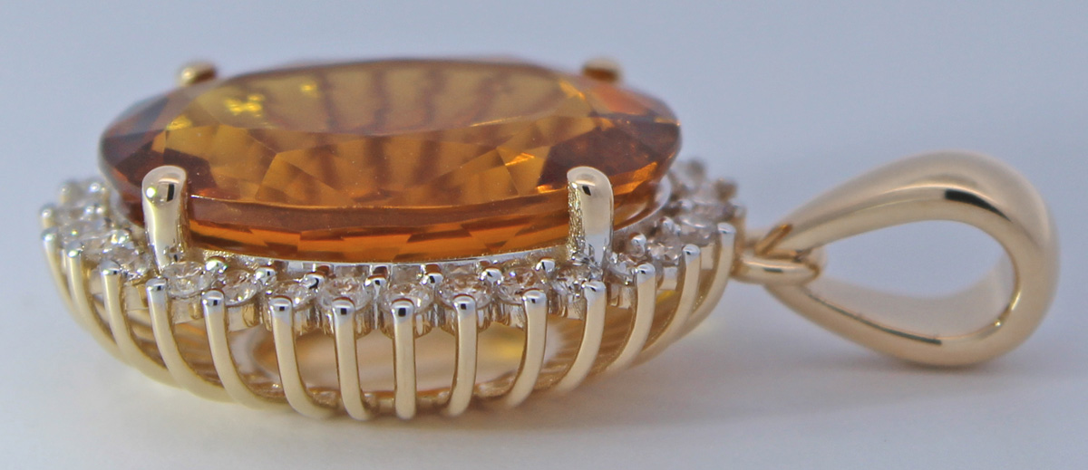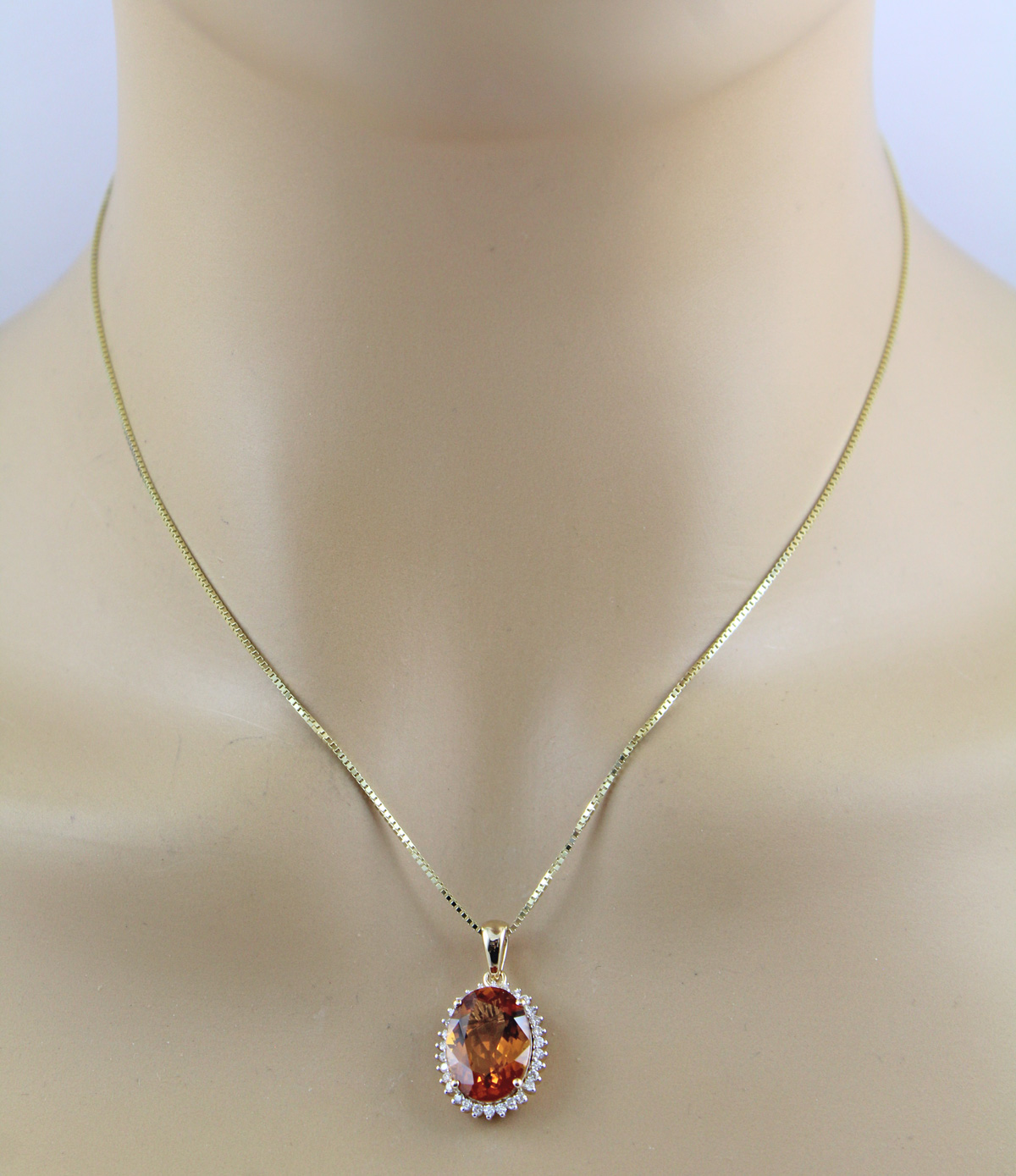 Diamant Anhänger Gold 585 14K Natur Beryll 5.4ct Labor Diamanten 0.30ct