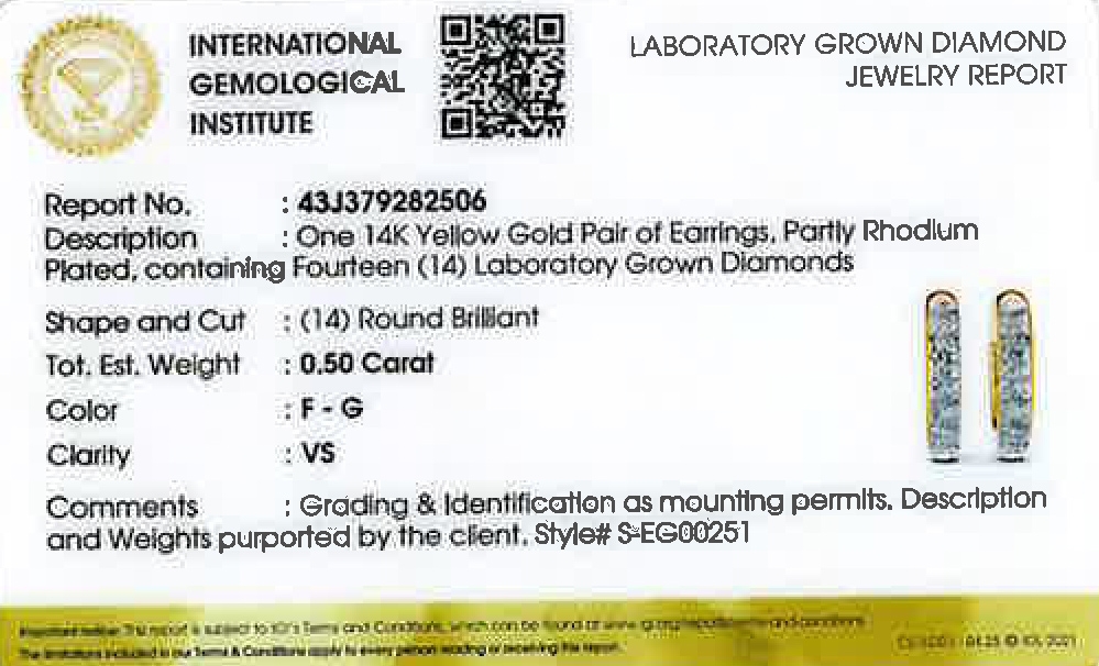 Diamant Creolen 0.50ct Gold 585 14K Lab Grown Diamanten IGI Zertifikat