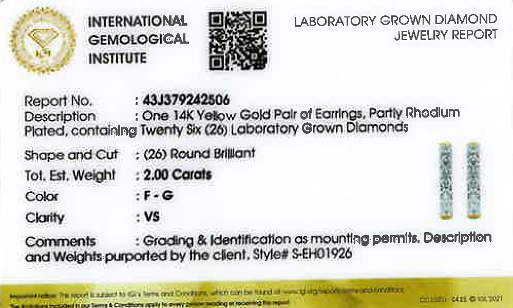 Diamant Creolen 2ct Gold 585 14K Lab Grown Diamanten IGI Zertifikat