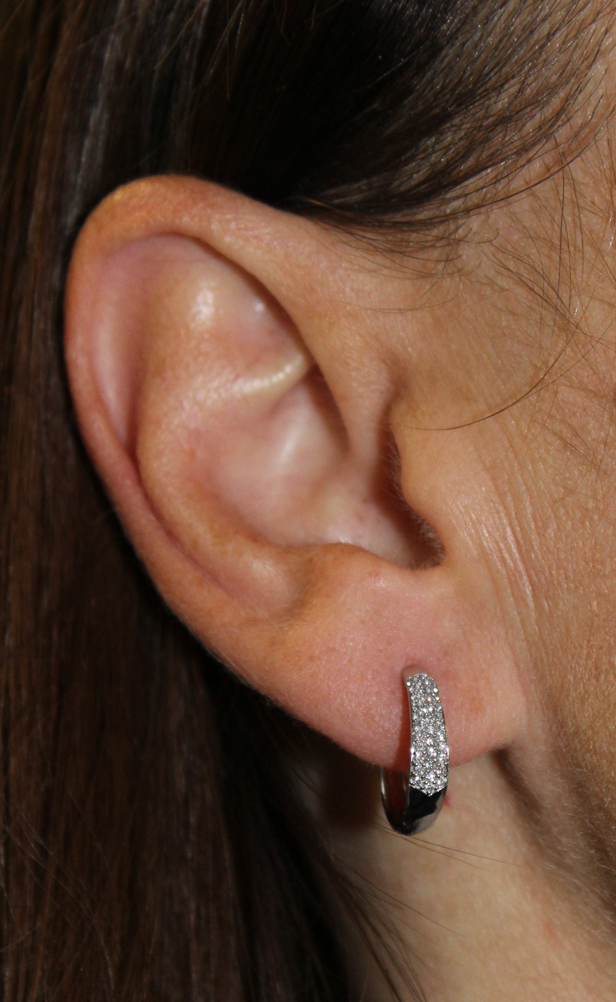 Diamant Creolen Weißgold 375 9K Lab Grown Diamanten 0.20ct. Ein einzigartiges Design, die Blicke werden ihnen sicher sein. Breite 2,5-3,5mm, Stärke 1,6mm, Total 2,25 Gramm. Damenohrringe Goldschmuck Labor Diamanten. Tauchen Sie ein in die Welt der meisterhafter Goldschmiedekunst