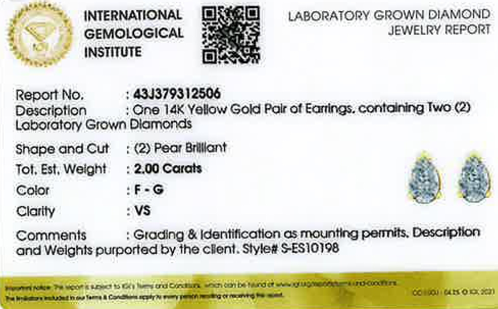 Diamant Ohrringe 2ct Gold 585 14K Lab Grown Diamanten IGI Zertifikat
