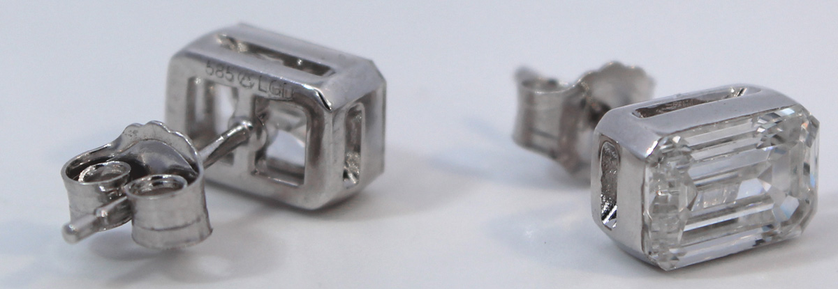 Diamant Ohrstecker 2ct Weißgold 585 14K Lab Grown Diamanten IGI Zertifikat. Ein absoluter Hingucker, die Blicke werden ihnen sicher sein. Breite 5,1mm, Länge 7,2mm, Stärke 4,1mm, Total 1,75 Gramm. Damenohrringe Goldschmuck Labor Diamanten. Tauchen Sie ein in die Welt der meisterhafter Goldschmiedekunst
