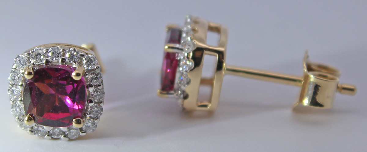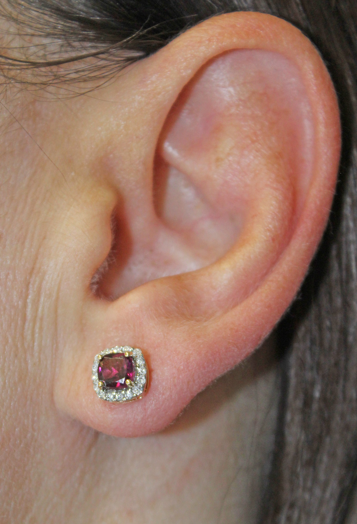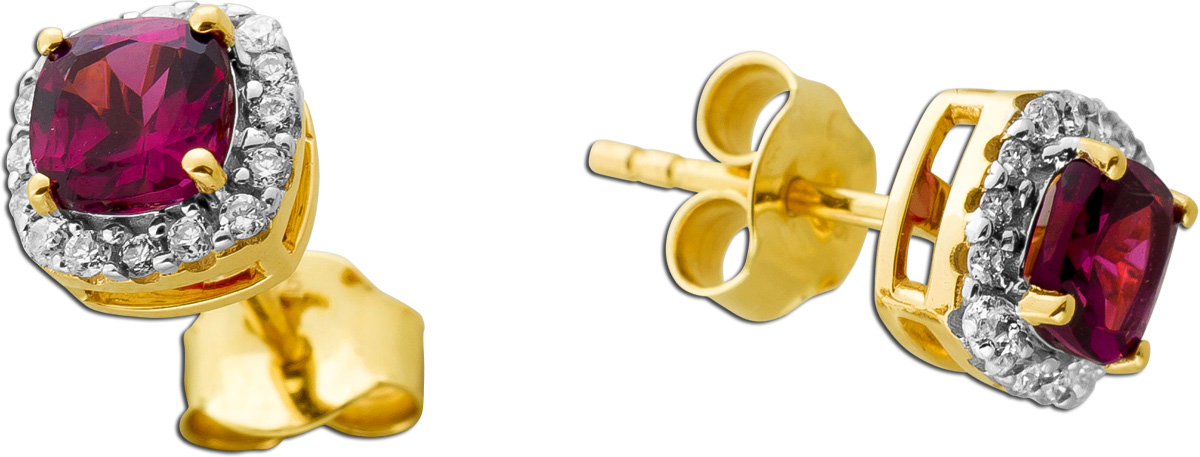Diamant Ohrstecker Gold 375 9K Natur Rhodolite Labor Diamanten 0.20ct