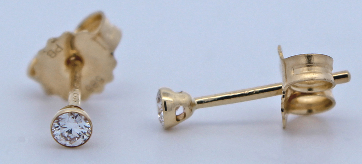 Diamant Ohrstecker Gold 585 14K Lab Grown Diamanten 0.10ct. Ein absoluter Klassiker unten den Solitär Ohrringen. Durchmesser 2,5mm, Stärke 2,2mm, Gewicht 0,42 Gramm. Damenohrringe Goldschmuck Labor Diamanten. Dieses Schmuckstück ist ein Symbol für Klasse, das Generationen überdauert