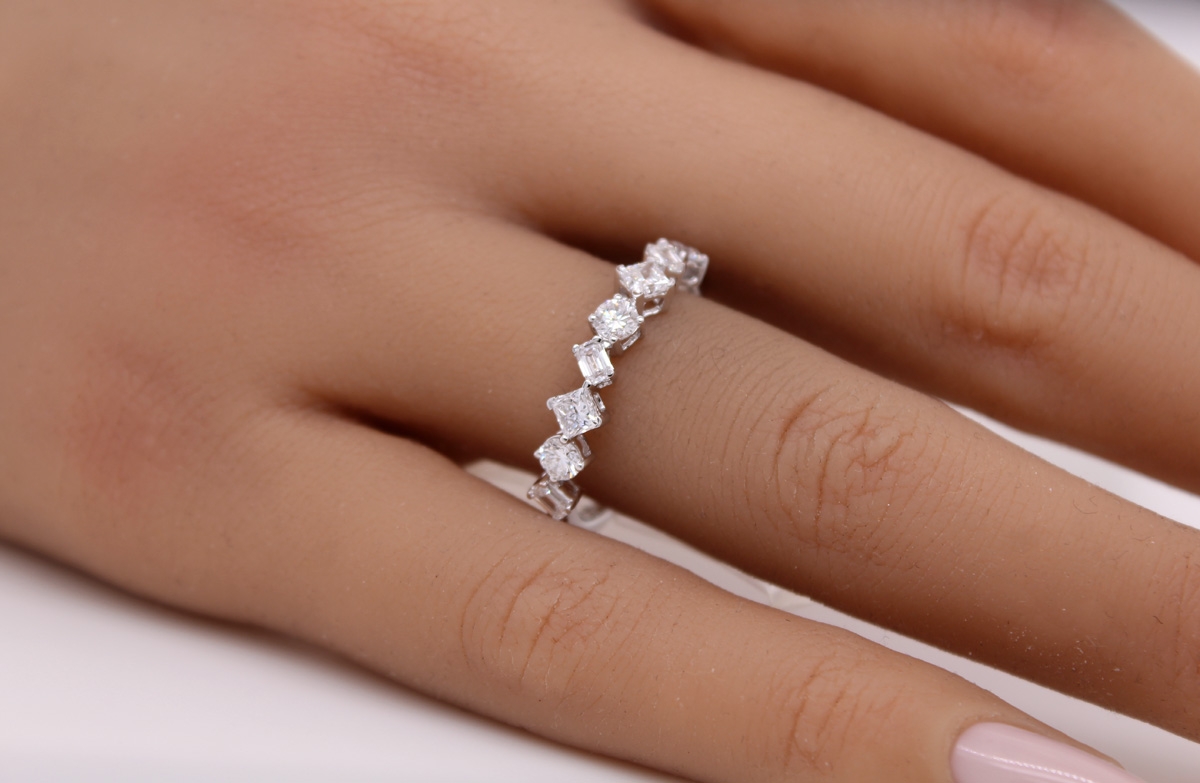 Diamant Ring Weißgold 585 14K Lab Grown Diamanten 1.0ct. Ein Ring welcher sich durch 3 verschiedene Schliffarten abhebt. Breite 4,5mm, Höhe 2,9mm, Stärke 1,7mm, 17-20mm, ca. 2,69 Gramm. Damenring Diamantring Lab Grown Diamanten. Eine exquisite Ergänzung für Ihre Schmucksammlung
