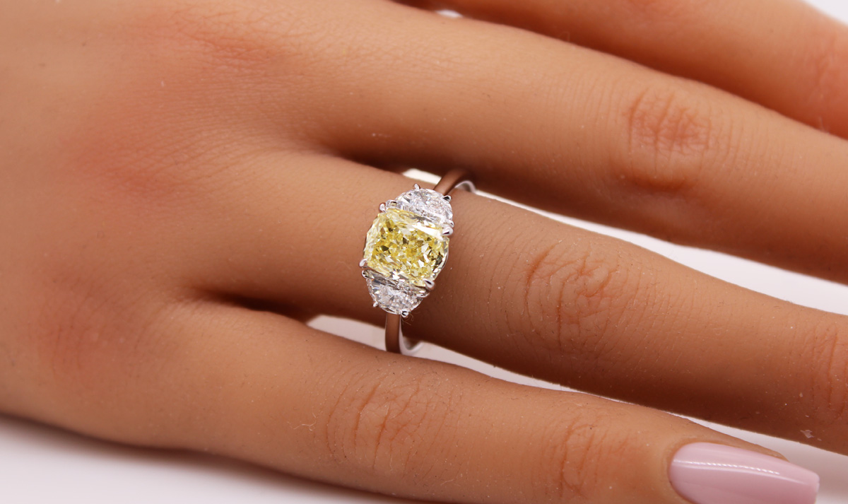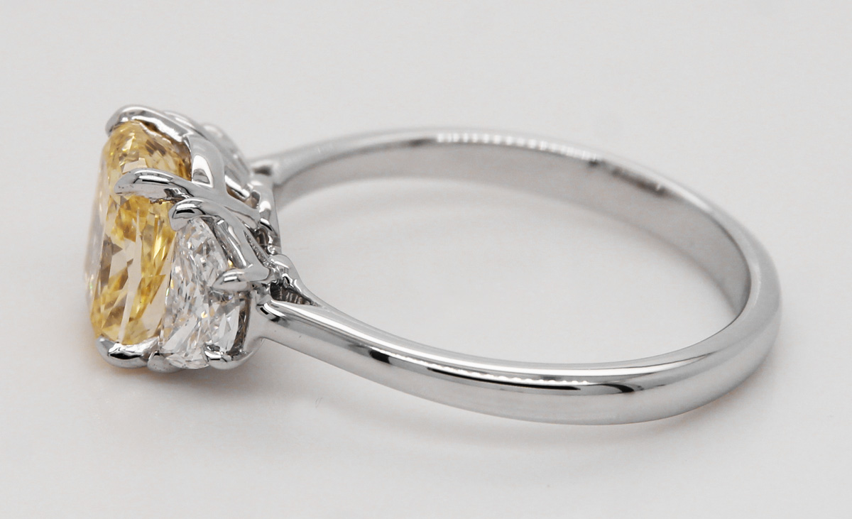 Diamantring 3.30ct Weissgold 585 14K Lab Grown Diamant fancy yellow Halfmoon Diamanten IGI. Dieser stilvolle Ring begeistert mit seiner Farbintensität und verschiedener Schlifftechniken. Breite 8,4mm, Höhe 7mm, Stärke 1,5mm, 4,29 Gramm, 17-20mm. Damenring Brillantring Labor Diamanten. Ein imposanter und zeitloser Klassiker, welcher jedes Frauenherz höher schlagen lässt