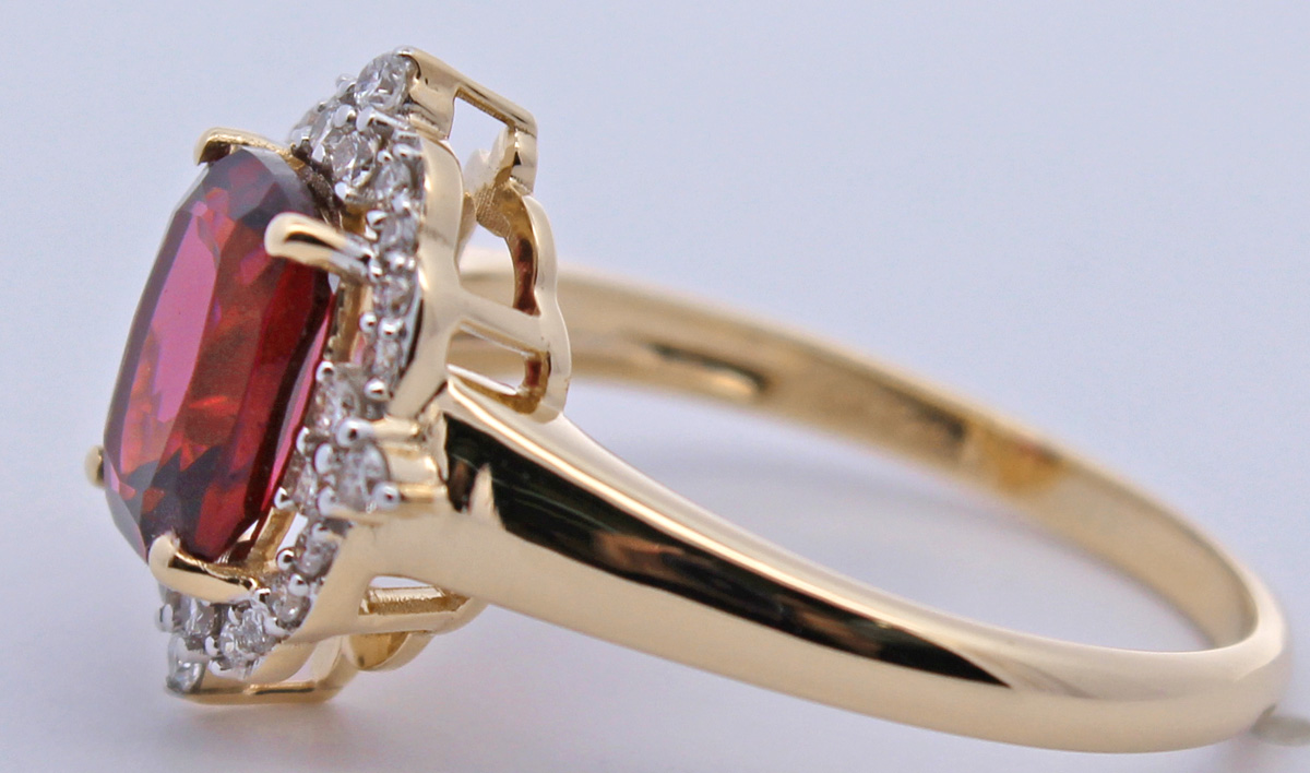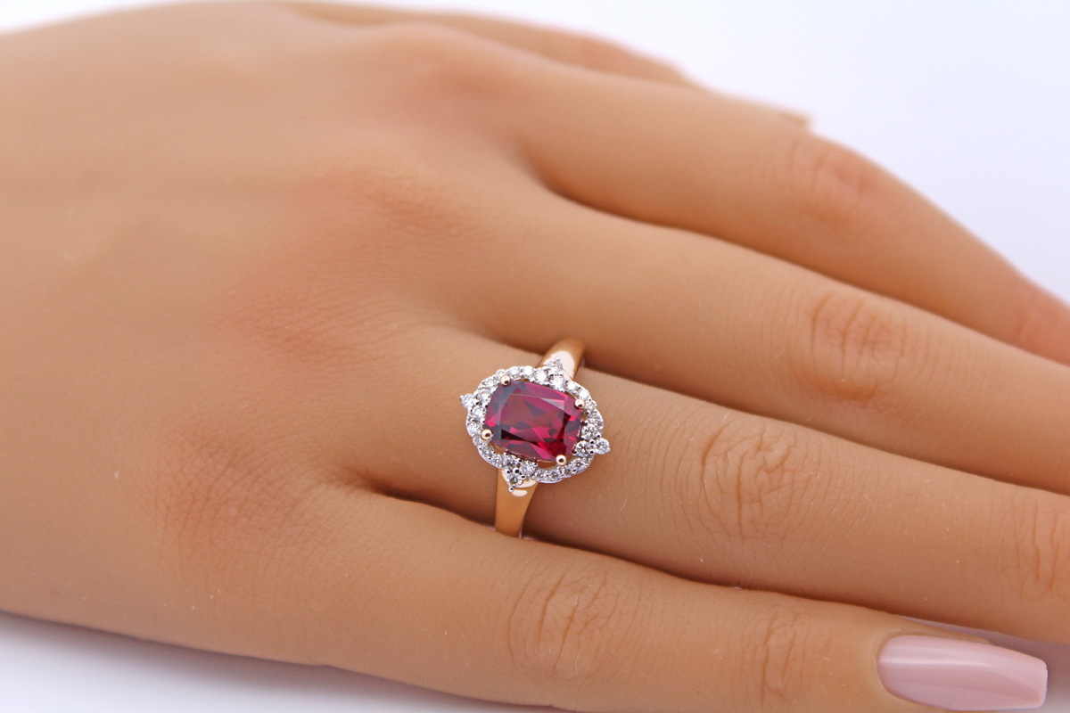 Diamantring Gold 375 9K Natur Rhodolit 2.95ct Lab Grown Diamanten 0.30ct 19