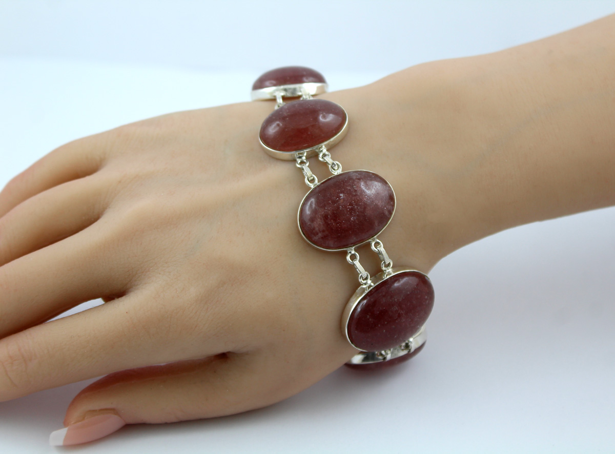 Erdbeerquarz Armband Silber 925 pinke Edelsteine 75ct 23
