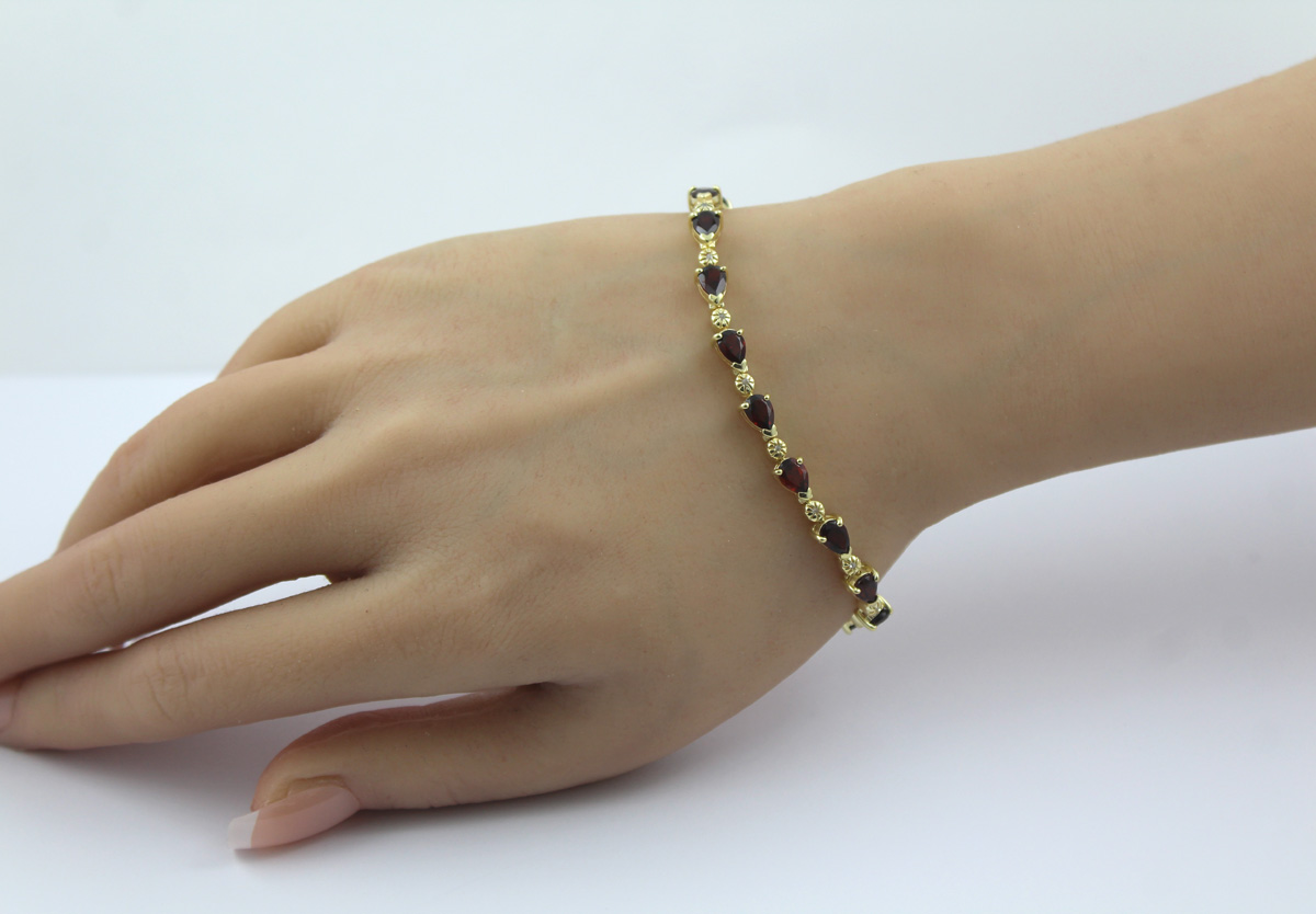 Granat Armband Silber vergoldet Diamanten 0.17ct 18