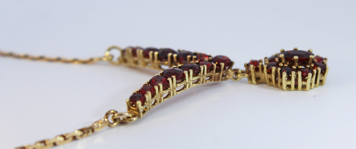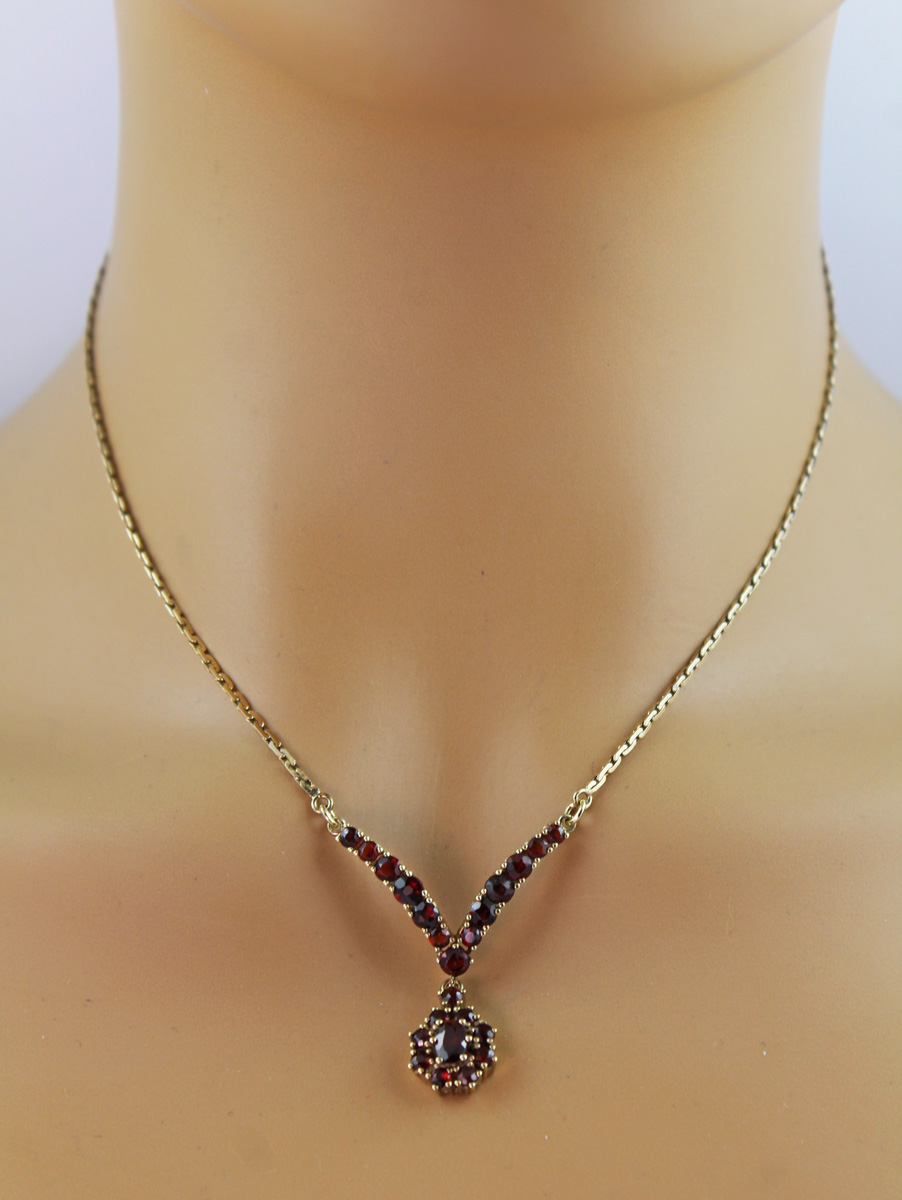 Granat Collier Gold 333 8K rote Edelsteine 7.4ct Antikschmuck 41