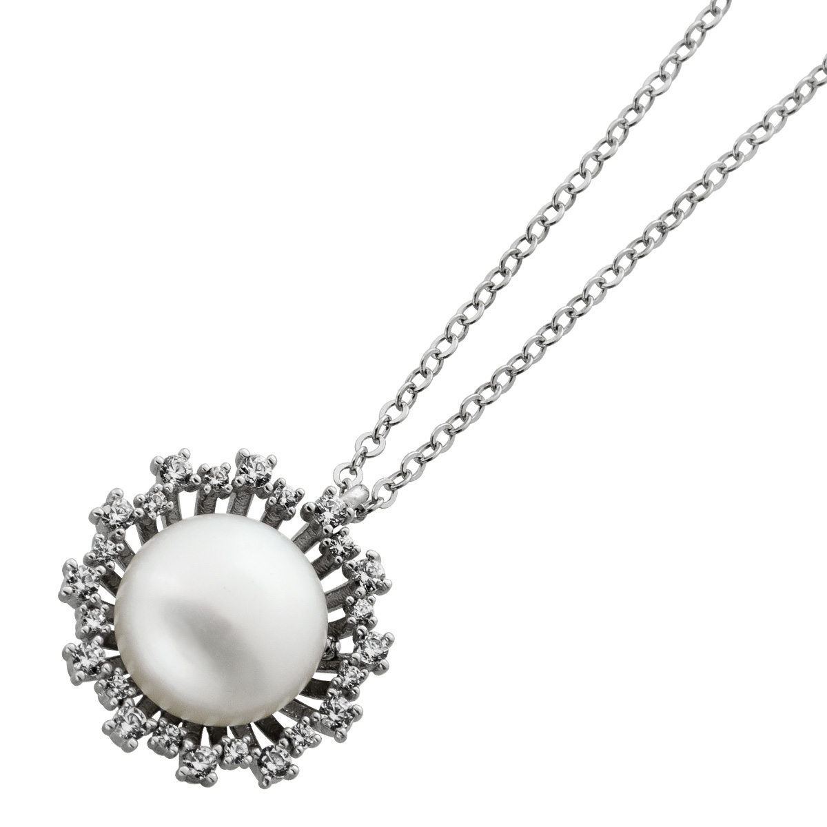 Halskette Anhänger Silber 925 Süßwasserperle weiße Zirkonia 45