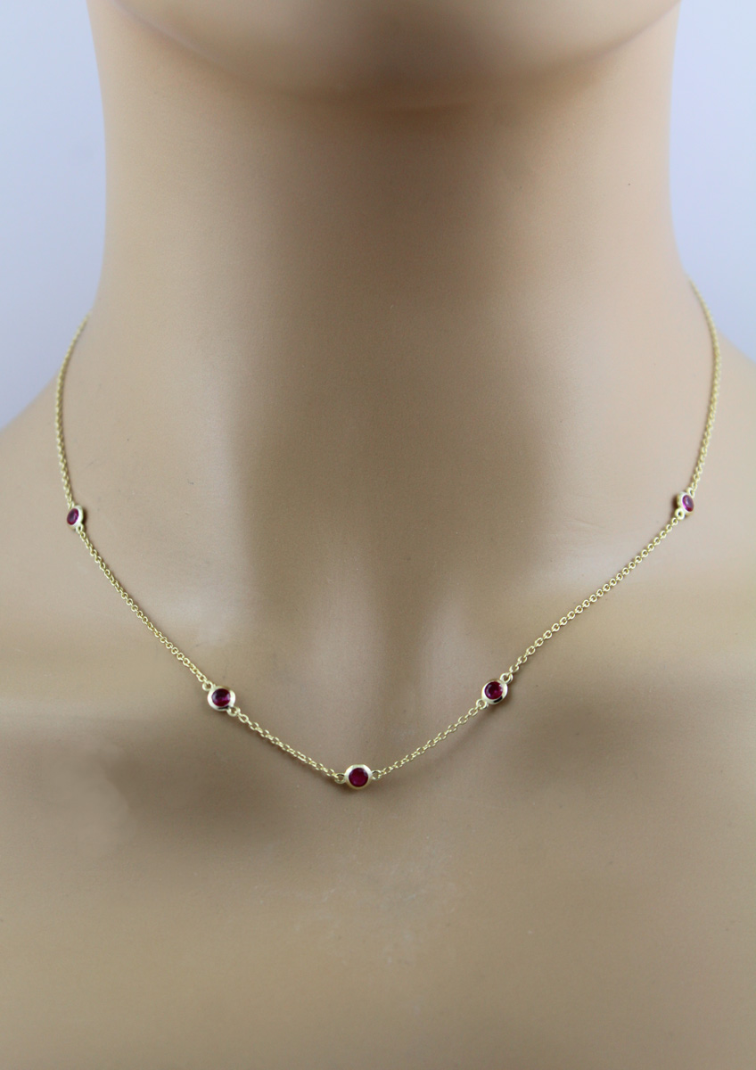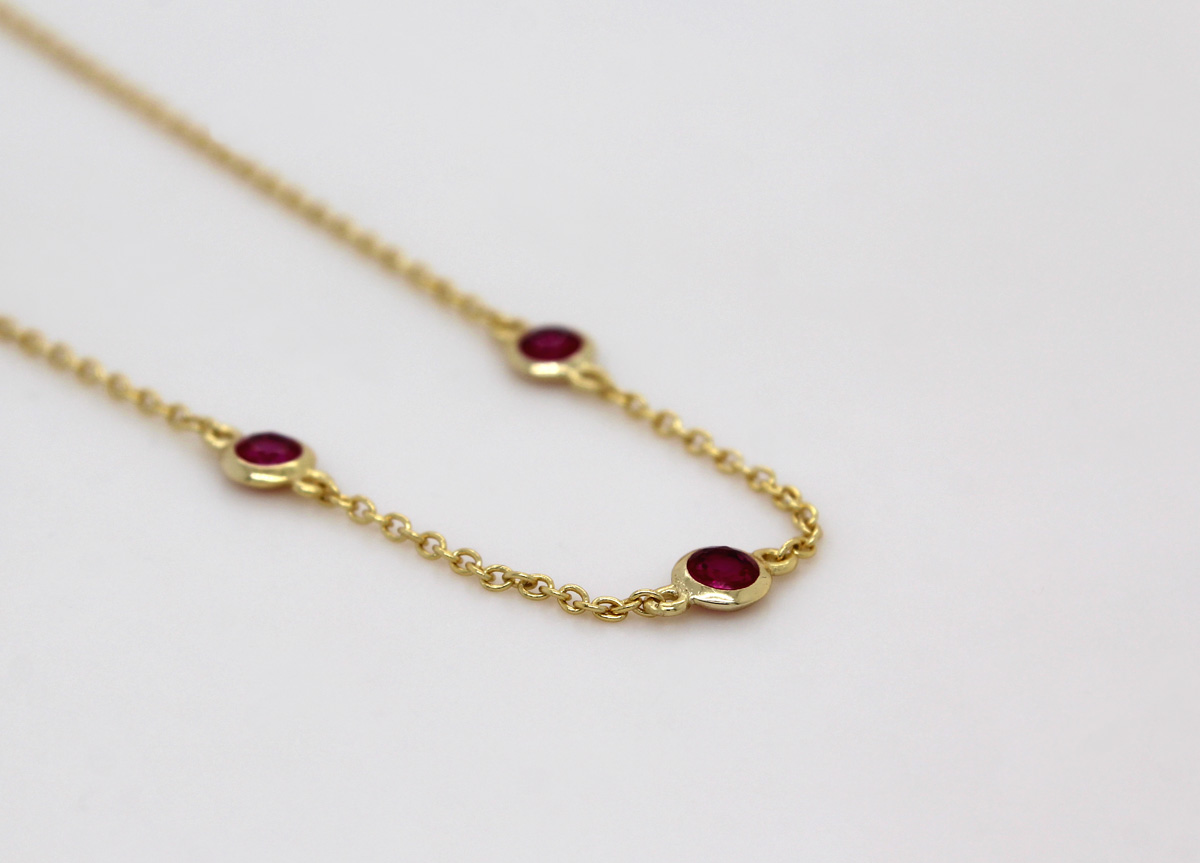 Halskette Silber 925 Gelbgold vergoldet synthetische rote Rubine 47