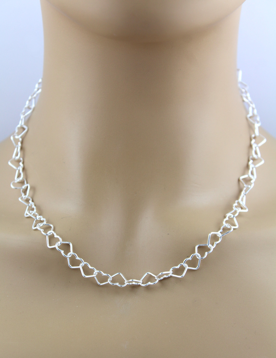 Kette Silber 925 Herzdesign. Kettenbreite 7,6mm,Stärke 1mm, 42cm - 13,23g, 47cm - 14,81g,. Ein imposantes Schmuckstück, welches als Symbol für die Liebe steht