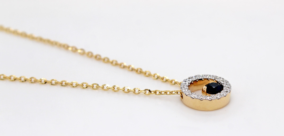 Happy Lady Kette Gold 585 14K Saphir Diamanten Natur Edelsteine. Spezieller und zugleich traumhafter Schmuck für den Alltag oder auch zum Ausgehen. Länge 40-45cm, Kettenbreite 1,3mm, Gewicht 4,02 Gramm, Anhänger: Durchmesser 10,8mm, Stärke 3,1mm. Damenschmuck Damenkette Damenanhänger Brillantschmuck. Ein zeitloses Accessoire, das in keiner Schmucksammlung fehlen sollte