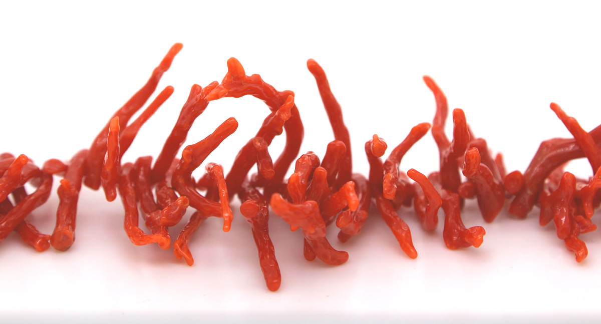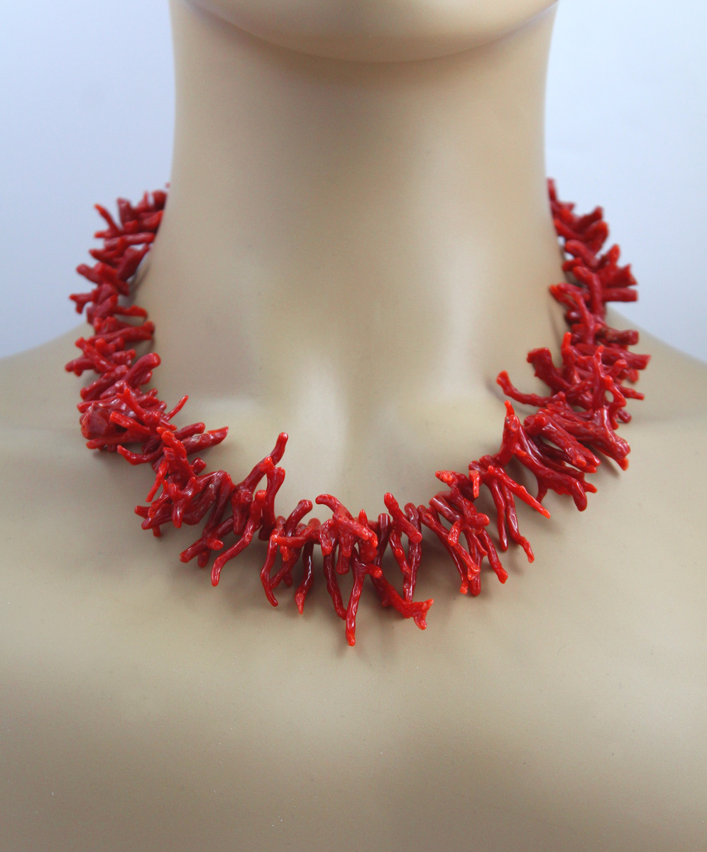 Korallenkette rote Koralläste Gelbgold vergoldet Antikschmuck. Eine auffallende Kette mit imposanten Korallästen. Länge 48cm, Korallen 40,2-5,1mm, 61,84g. Damenkette Damenschmuck Edelsteinschmuck. Eine exquisite Ergänzung für Ihre Schmucksammlung