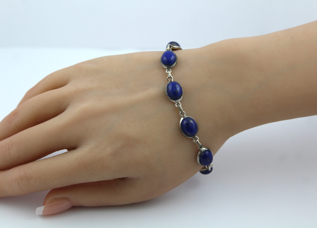Lapislazuli Armband Silber 925 blaue Edelsteine 25ct. Der Lapislazuli war bereits bei den Königen sehr beliebt. Breite 10,1mm, Höhe 5,8mm, Längen 18-20cm, 12,9 Gramm. Damenarmband Edelsteinarmband Damenschmuck. Ein imposanter und zeitloser Klassiker, welcher jedes Frauenherz höher schlagen lässt