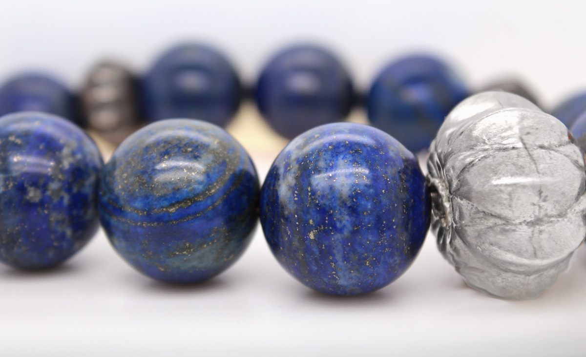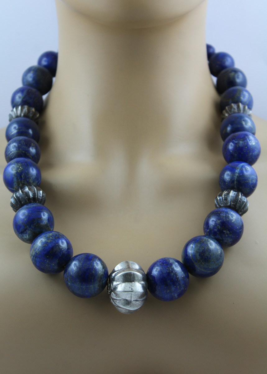 Lapislazuli Kette Silber 925 azurblaue Edelsteine 1800ct. Antikschmuck 60