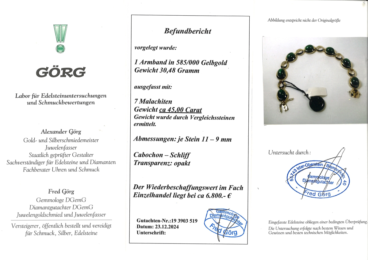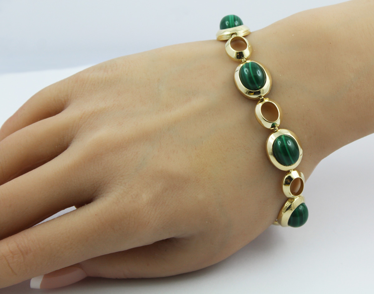 Malachit Armband Gold 585 14k grüne Edelsteine 45ct 19