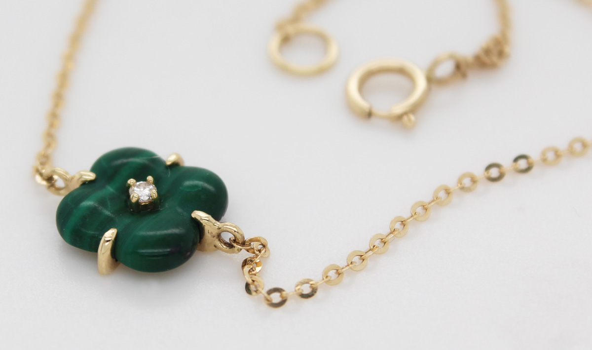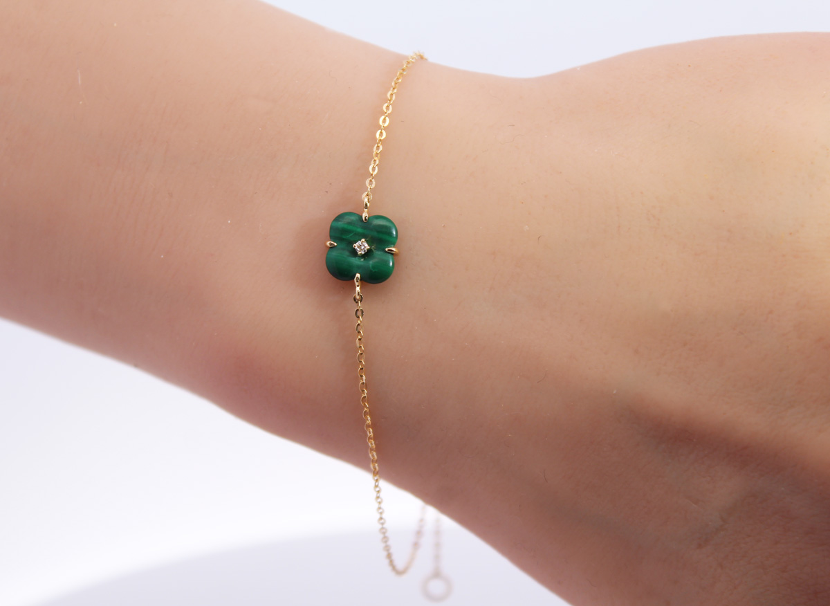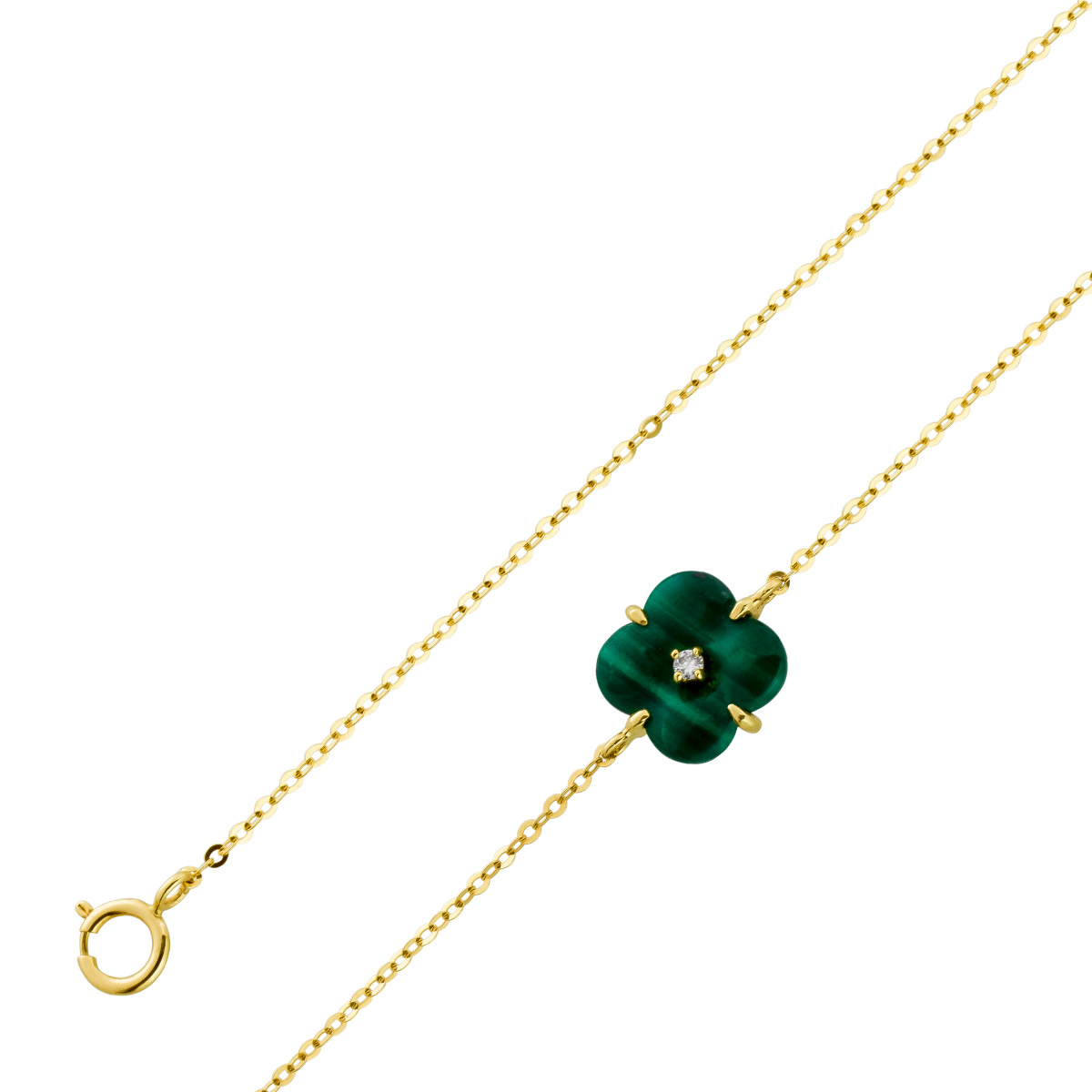 Malachit Armband Kleeblatt Gelbgold 585 14K Brillant 0.015ct 18