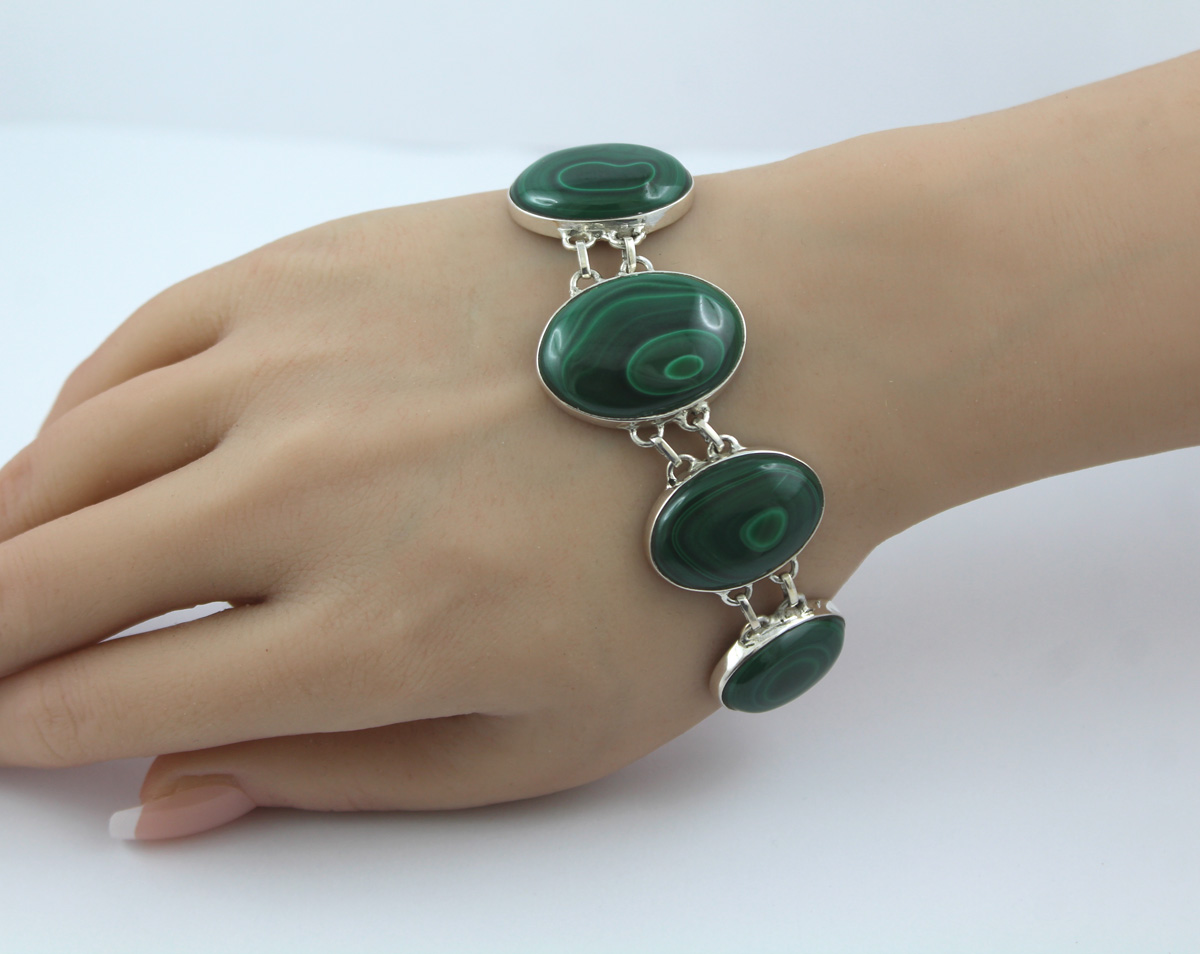 Malachit Armband Silber 925 grüne Edelsteine 100ct 20